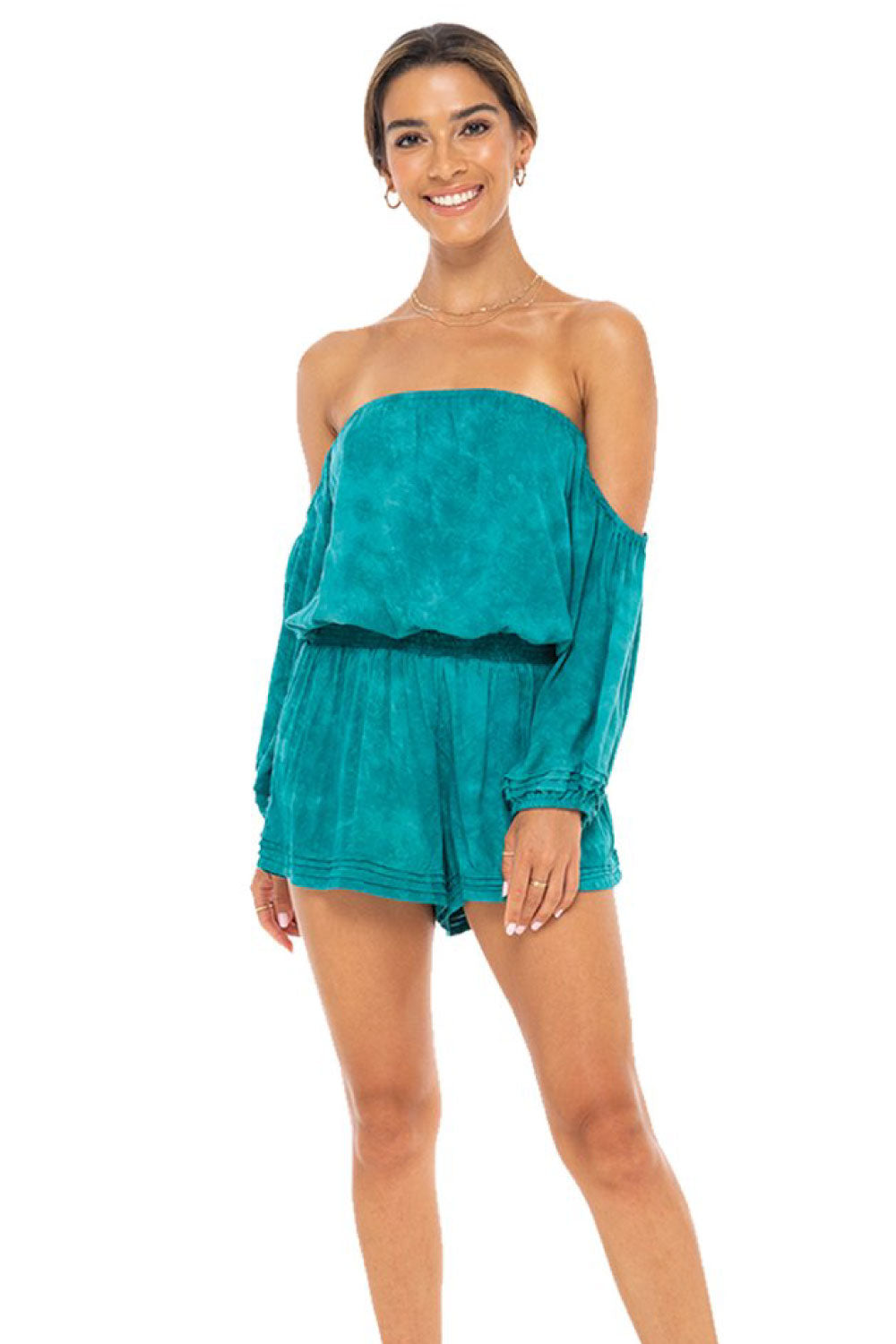 Introducing the Jessie Romper! With 3/4, off-shoulder sleeves, pleat detailing on the hem and cuffs, and a smocked waist, this piece guarantees an effortless yet fashionable look.