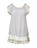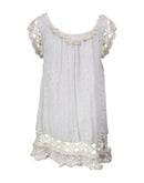 This beautiful, white dress is perfect for casual Saturdays spent shopping or out on a dinner date. With crocheted detailing and soft, frayed ends, this dress is truly one of a kind!