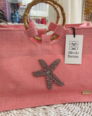 Every bag enthusiast needs a beach bag. This bag has mambu handles craft with a beautiful sea star in the middle. Are you ready to have fun in the sun?