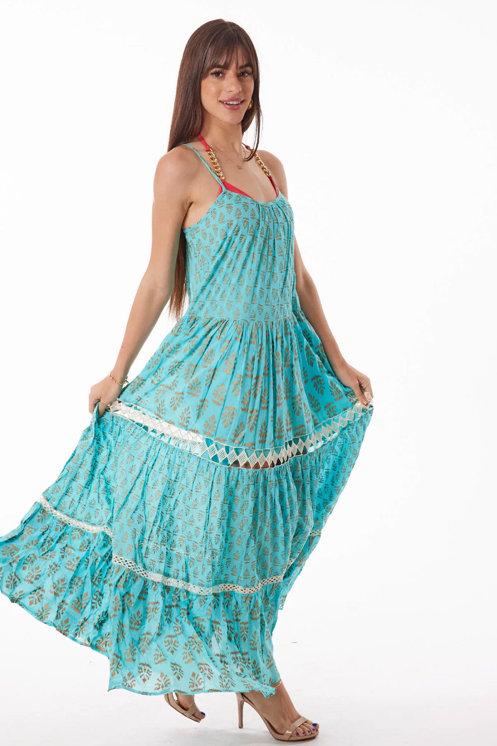 This gorgeous tier dress showcases eye-catching colors. Made of 100% cotton, this lightweight dress is perfect for summer outings and vacations!