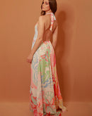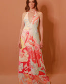 This long, straight dress features a deep V-neckline, adjustable straps, an open back and elasticated skirt.