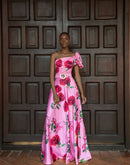 The most beloved, the life dress steals all looks represents femininity and romanticism with its print of roses, manga in a single shoulder, belt built-in to define the waist