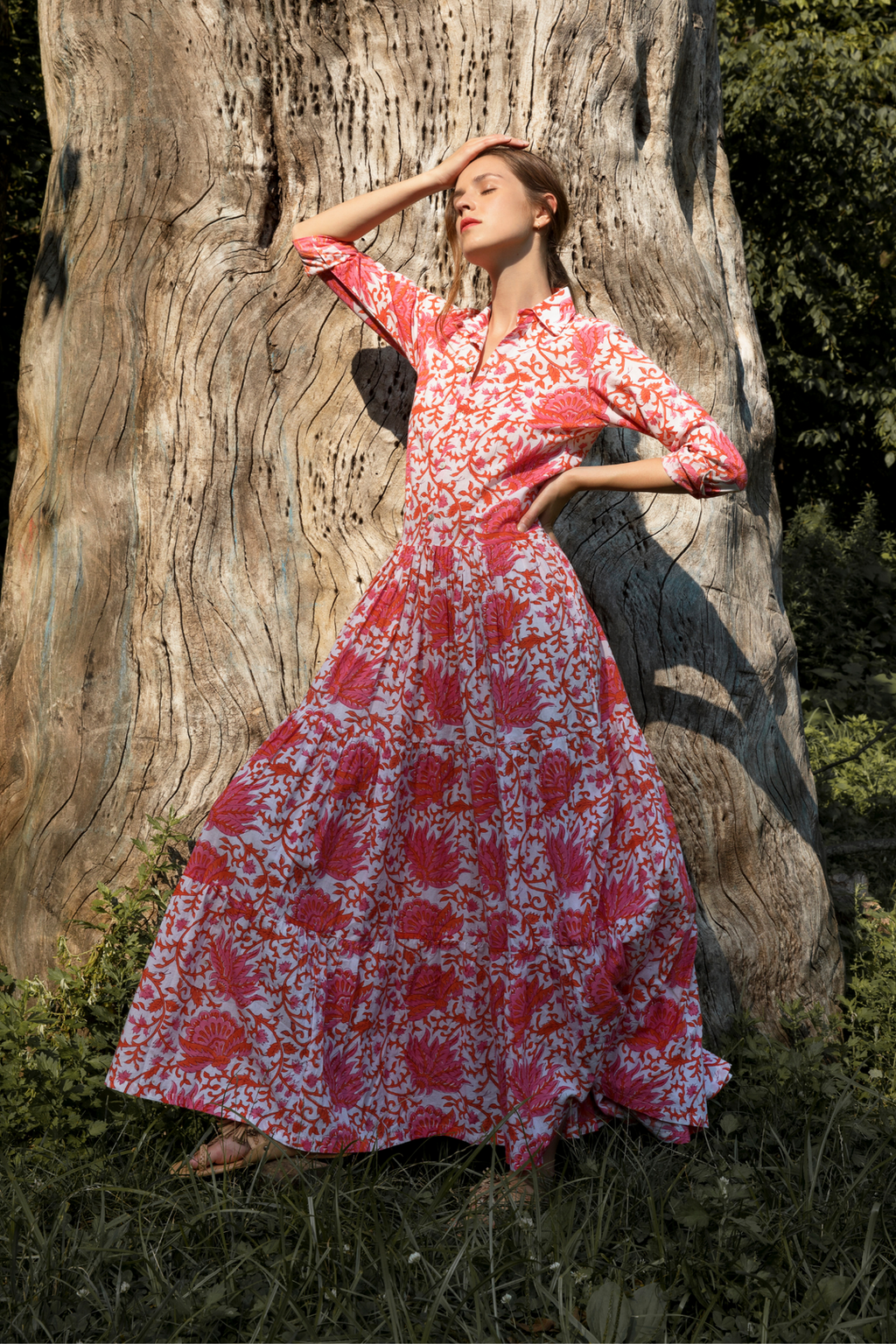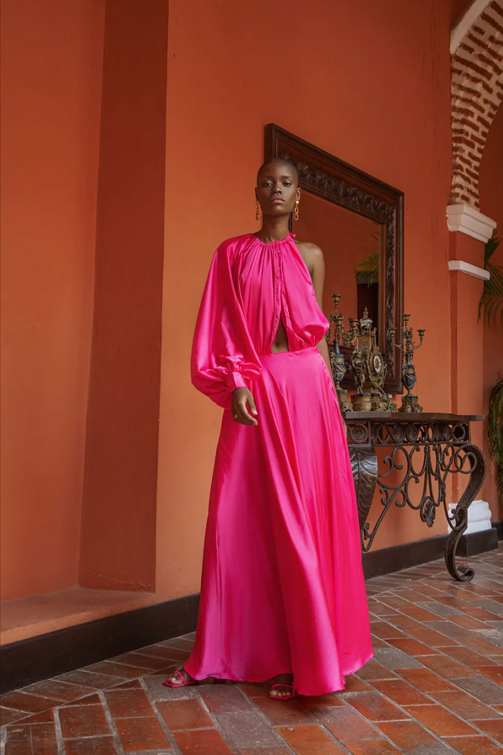 Our Meridith Dress has great movement when you walk. The flowing and graceful style is inspired by our Latin American / Colombian heritage combined with elements of Indian culture.