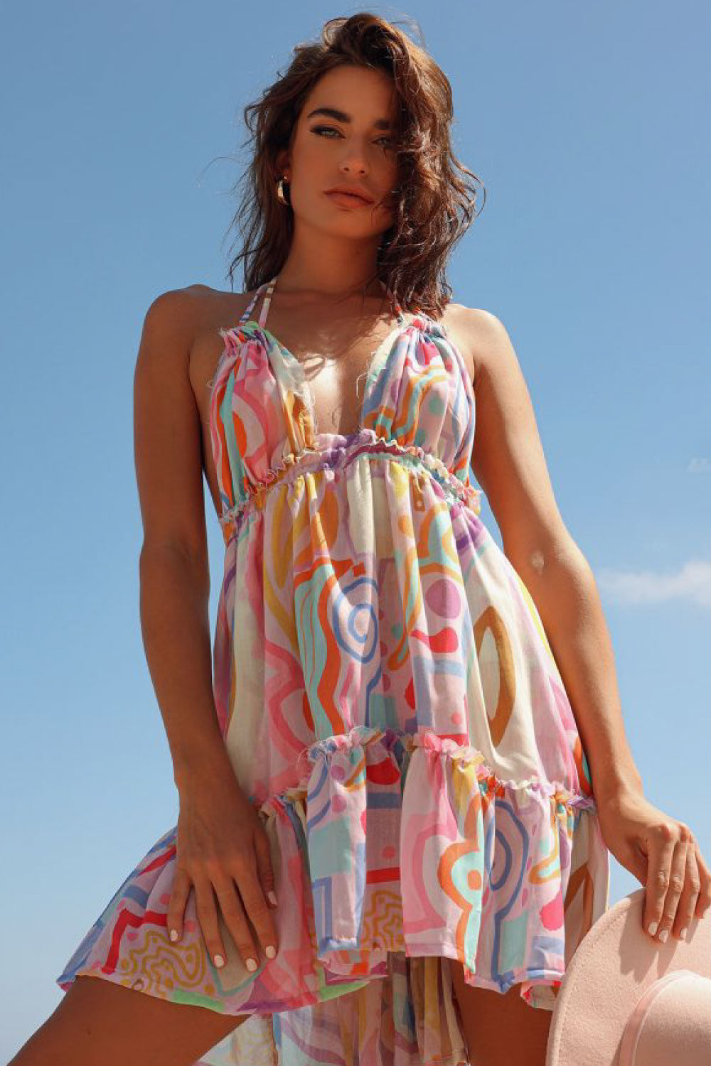 This gorgeous tier dress showcases eye-catching colors. Made of 100% cotton, this lightweight dress is perfect for summer outings and vacations!