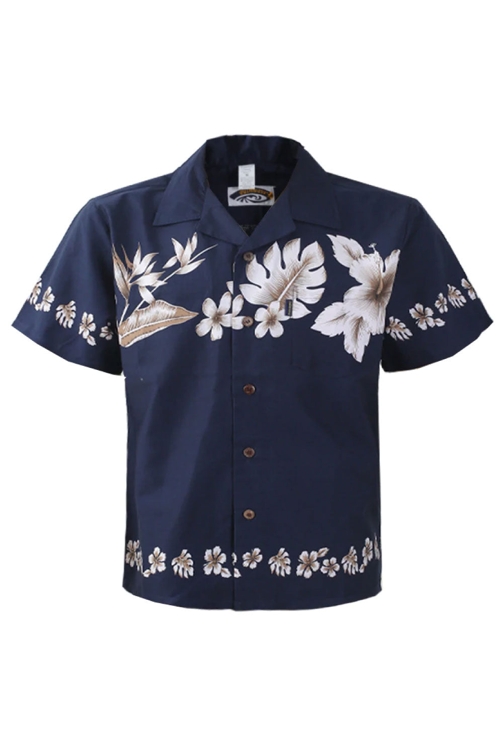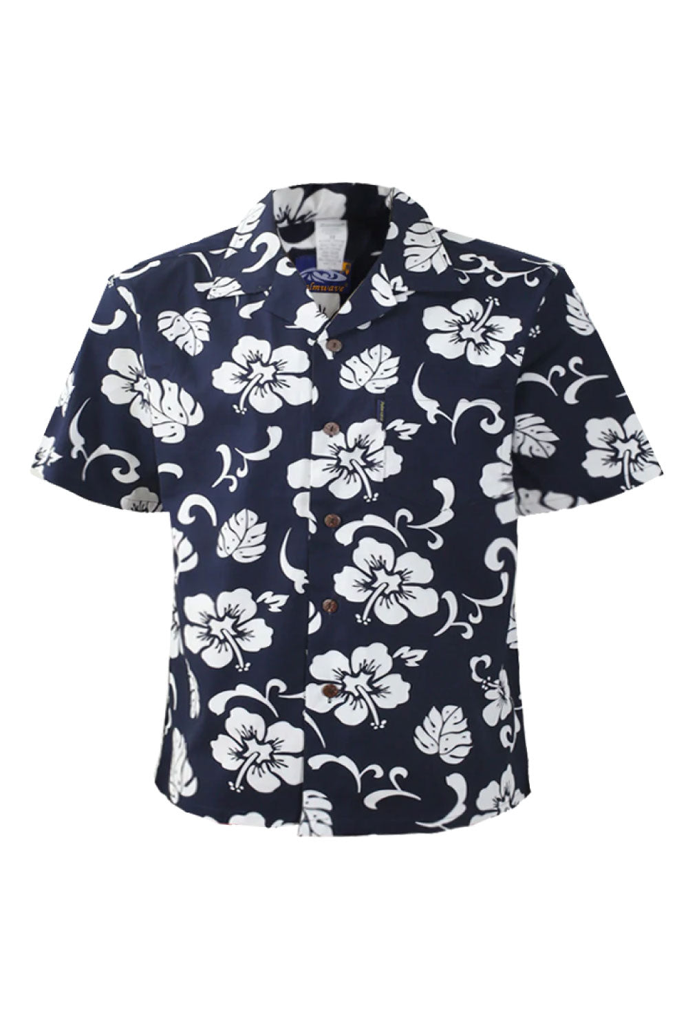 Kick off your summer in the Navy Hibiscus Aloha Shirt by Palmwave! Specifications: 100% cotton Coconut buttons Comfort fit — slightly wider for more comfort
