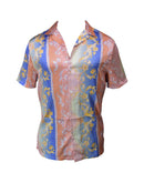 Hit the town in style with the Gold Floral Button-up! With a scrolling gold leaf pattern and combination of peach and blue, this shirt is truly unique!