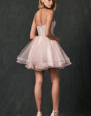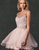 This short, pink prom dress is everything you could ever want from formal attire. With a tulle skirt and beaded bodice, you'll feel like a fairy princess all night long!