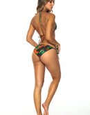 Nothing says luxury like this Bora Bora Bikini Set! The ties on the Brazilian-cut bottoms allow for adjustment, and the ruched back adds a subtle flair. The halter top is also adjustable with string ties, and has removable cups to suit your personal preference.