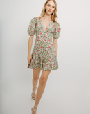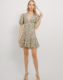 Flower Short Dress Green and Pink