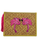 Pink Flamingo Straw Clutch